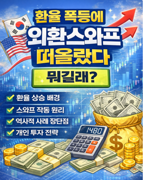 최근 환율이 1,480원대 이상으로 계속 상승하면서 '외환스와프'이라는 용어가 화제가 되고 있습니다. 2025년 12월 원-달러 환율이 8개월 만에 최고치를 기록하자 정부와 한국은행은 시장 안정을 위해 국민연금과의 대규모 스왑을 1년 연장했습니다. 환율이 이렇게 높은 이유는 무엇이며, 외환스왑은 실제로 효과가 있을까요?